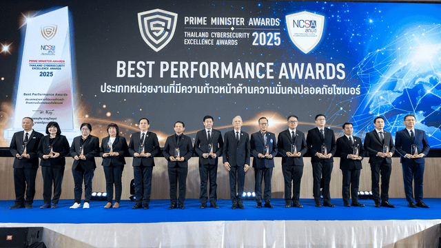 งาน “Prime Minister Awards: Thailand Cybersecurity Excellence Awards 2025” จัดขึ้นโดย สำนักงานคณะกรรมการการรักษาความมั่นคงปลอดภัยไซเบอร์แห่งชาติ (สกมช.) เมื่อวันที่ 20 พฤศจิกายน 2568 ที่ผ่านมา เพื่อเชิดชูหน่วยงานที่มีผลงานโดดเด่นในการสร้างความมั่นคงปลอดภัยไซเบอร์ของประเทศ โดยมี นายพิพัฒน์ รัชกิจประการ รองนายกรัฐมนตรี เป็นประธานมอบโล่เกียรติยศ และมี พลอากาศตรี อมร ชมเชย เลขาธิการ สกมช. ร่วมในพิธี ซึ่งปีนี้มีองค์กรเข้าร่วมการประเมินกว่า 200 หน่วยงานทั่วประเทศ สะท้อนถึงความสำคัญของการเสริมภูมิคุ้มกันดิจิทัลเพื่อต่อสู้ภัยคุกคามในยุคดิจิทัล