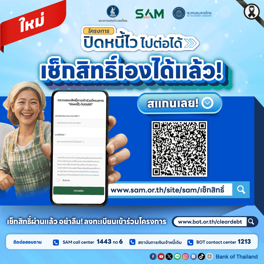 📝 เช็กสิทธิ์ผ่านแล้ว อย่าลืม! ลงทะเบียนเข้าร่วมโครงการ www.bot.or.th/cleardebt