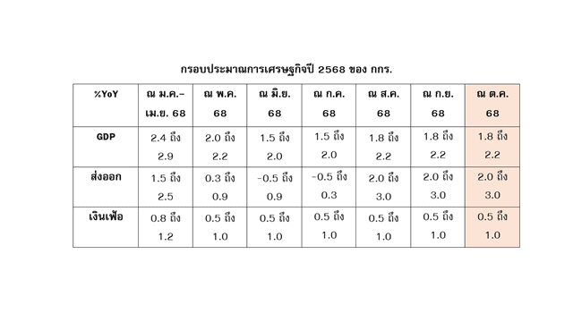 เมื่อวันที่ 1 ตุลาคม 2568 ดร.พจน์ อร่ามวัฒนานนท์ ประธานกรรมการสภาหอการค้าแห่งประเทศไทย เป็นประธานการประชุมคณะกรรมการร่วมภาคเอกชน 3 สถาบัน (กกร.) โดยมี นายผยง ศรีวณิช ประธานกรรมการสมาคมธนาคารไทย และ นายเกรียงไกร เธียรนุกุล ประธานสภาอุตสาหกรรมแห่งประเทศไทย (ส.อ.ท.) ร่วมในการแถลงข่าวสรุปสาระสำคัญได้ดังนี้