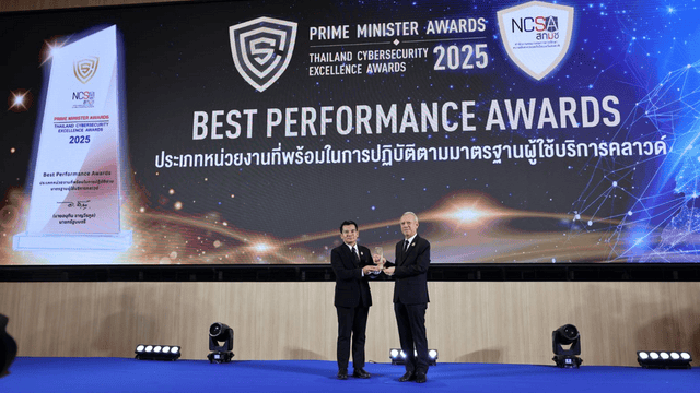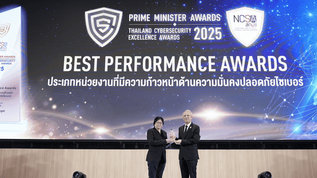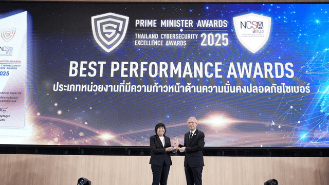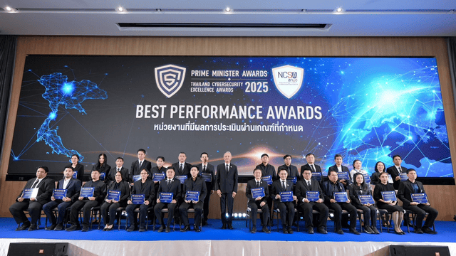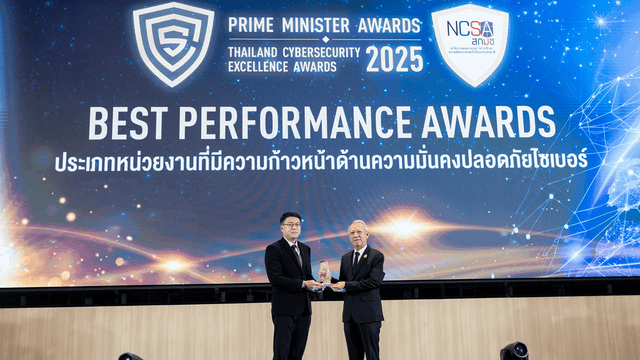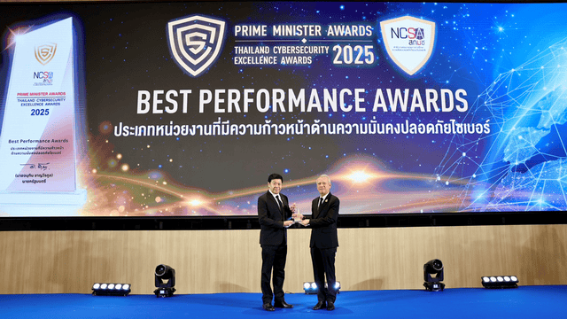 งาน “Prime Minister Awards: Thailand Cybersecurity Excellence Awards 2025” จัดขึ้นโดย สำนักงานคณะกรรมการการรักษาความมั่นคงปลอดภัยไซเบอร์แห่งชาติ (สกมช.) เมื่อวันที่ 20 พฤศจิกายน 2568 ที่ผ่านมา เพื่อเชิดชูหน่วยงานที่มีผลงานโดดเด่นในการสร้างความมั่นคงปลอดภัยไซเบอร์ของประเทศ โดยมี นายพิพัฒน์ รัชกิจประการ รองนายกรัฐมนตรี เป็นประธานมอบโล่เกียรติยศ และมี พลอากาศตรี อมร ชมเชย เลขาธิการ สกมช. ร่วมในพิธี ซึ่งปีนี้มีองค์กรเข้าร่วมการประเมินกว่า 200 หน่วยงานทั่วประเทศ สะท้อนถึงความสำคัญของการเสริมภูมิคุ้มกันดิจิทัลเพื่อต่อสู้ภัยคุกคามในยุคดิจิทัล