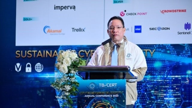 ศูนย์ประสานงานด้านความมั่นคงปลอดภัยเทคโนโลยีสารสนเทศภาคการธนาคาร หรือ Thailand Banking Sector CERT (TB-CERT) สมาคมธนาคารไทย จัดงานสัมมนาประจำปีด้านความมั่นคงปลอดภัยไซเบอร์ TB-CERT Cybersecurity Annual Conference 2023 ภายใต้หัวข้อหลัก “Sustainable Cybersecurity” เมื่อวันที่ 22 กันยายน 2566 ณ โรงแรม The Athenee Hotel, a Luxury Collection Hotel, Bangkok” เพื่อเผยแพร่ความรู้และสร้างความตระหนักถึงการเตรียมพร้อมและยกระดับด้านความมั่นคงปลอดภัยไซเบอร์ให้กับสมาชิก และบุคลากรในอุตสาหกรรมภาคการเงินการธนาคาร การลงทุน ประกันภัย รวมทั้งภาคอุตสาหกรรมอื่น ๆ ที่เกี่ยวข้อง โดยได้รับเกียรติจาก 1) คุณผยง ศรีวณิช กรรมการผู้จัดการใหญ่ ธนาคารกรุงไทย จำกัด (มหาชน) และประธานสมาคมธนาคารไทย กล่าว Welcome Address 2) ศาสตราจารย์พิเศษวิศิษฏ์ วิศิษฏ์สรอรรถ ปลัดกระทรวงดิจิทัลเพื่อเศรษฐกิจและสังคม กล่าว Opening Speech และ 3) คุณเดช ฐิติวณิช ผู้ช่วยผู้ว่าการ สายระบบข้อสนเทศ ธนาคารแห่งประเทศไทย กล่าว Special Event Keynote และวิทยากรจากหน่วยงานผู้สนับสนุน ไม่ว่าจะเป็น Keynote Speaker โดยบริษัท Gartner รวมทั้งการออกบูธแสดงเทคโนโลยีและโซลูชันจากองค์กรชั้นนำทั่วโลกผู้สนับสนุนการจัดงานถึง 17 บูธ มีผู้เข้าร่วมงานจากภาคธนาคาร และหน่วยงานอื่น ๆ รวมกว่า 500 ท่าน นอกจากนี้ ยังมีการจัดแข่งขัน TB-CERT Cyber Combat ประจำปี เพื่อฝึกทักษะในการปฏิบัติการเชิงรุกและเชิงรับของบุคลากรในภาคการธนาคารพันธมิตรด้วย ซึ่งได้รับการสนับสนุนระบบการฝึกดังกล่าวจากบริษัท Cyberbit